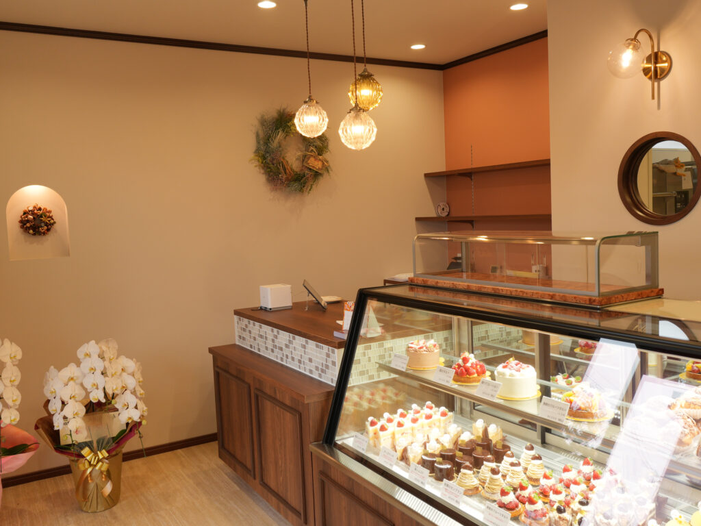 店主さんの好きなボルドーを外観に、重くなりすぎないようベージュを取り入れお客様からも親しみを持てる仕上がりに。