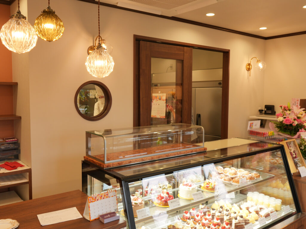 木目調の店内には丸窓やキラキラしたペンダントライトにブラケットライト。可愛らしい空間でお客様を出迎えます。依頼主様HPリンク
